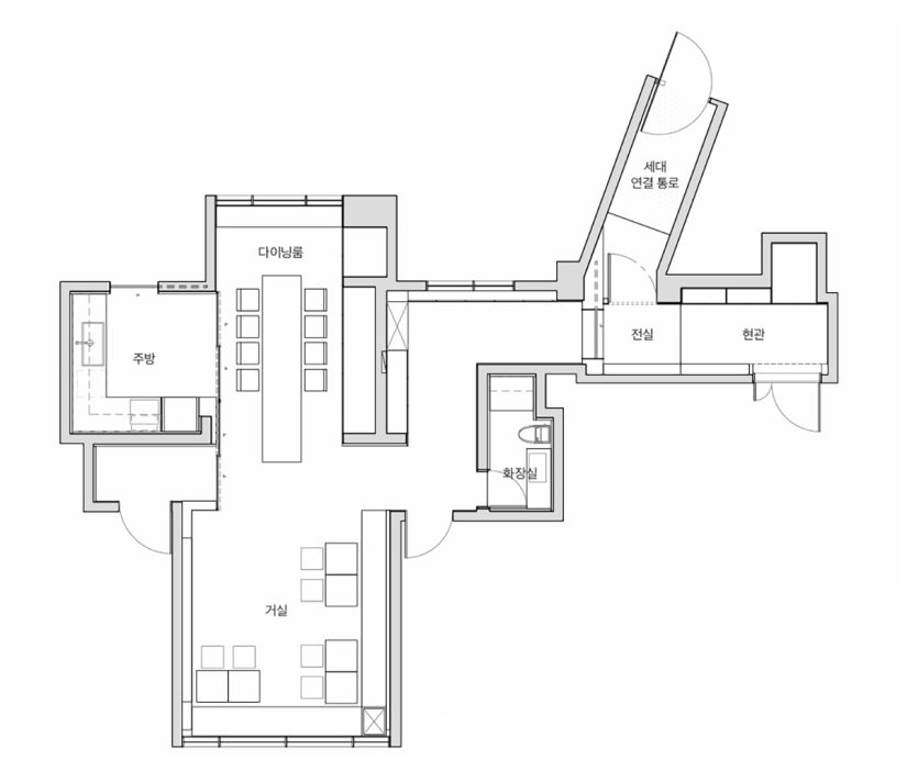 테이블 배치부터 텅 빈 세팅까지 주거 공간보다는 상업 공간에 가까워 보이는데요, 설계 과정과 이곳만의 특색이 궁금합니다.