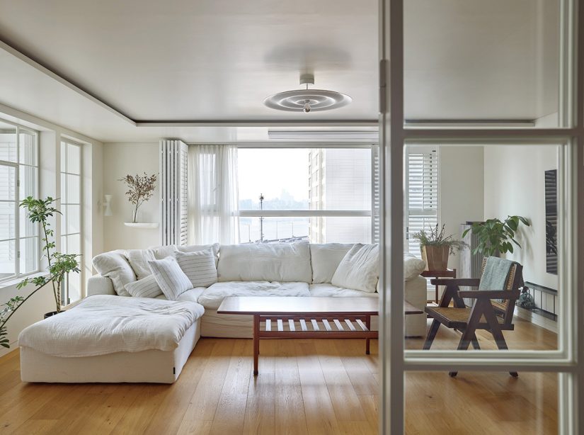 지난여름, 한강 풍경이 아름답게 내려다보이는 아파트에 김지영 씨 가족이 새 둥지를 틀었다. 20년 전 집을 고칠 때 함께한 트위니 심희진 대표와 다시 한번 호흡을 맞춰 완성한 164㎡ 아파트 수선기.
